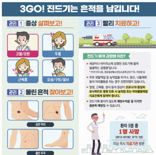 - 유행 지역·시간 피하기: 주로 9~11월, 산 자락·풀숲 지역 등